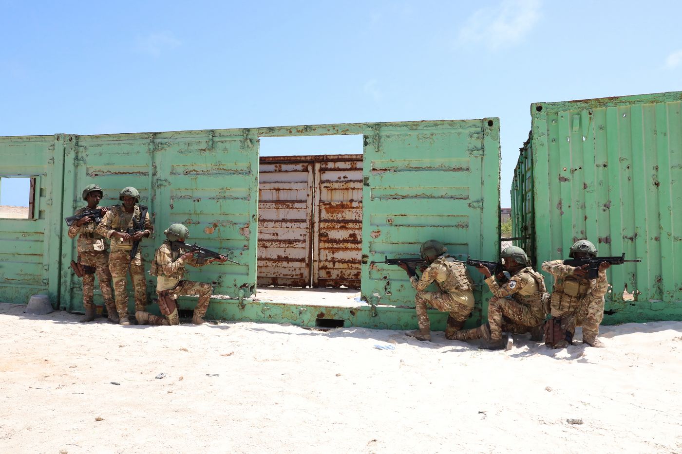 Somali soldiers are taking part in military training at the TURKSOM Military Training Base in Mogadishu, Somalia, on 25 August, 2025.